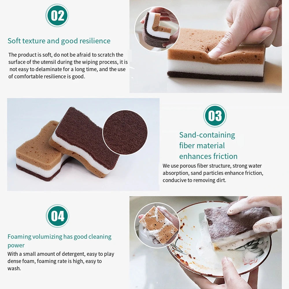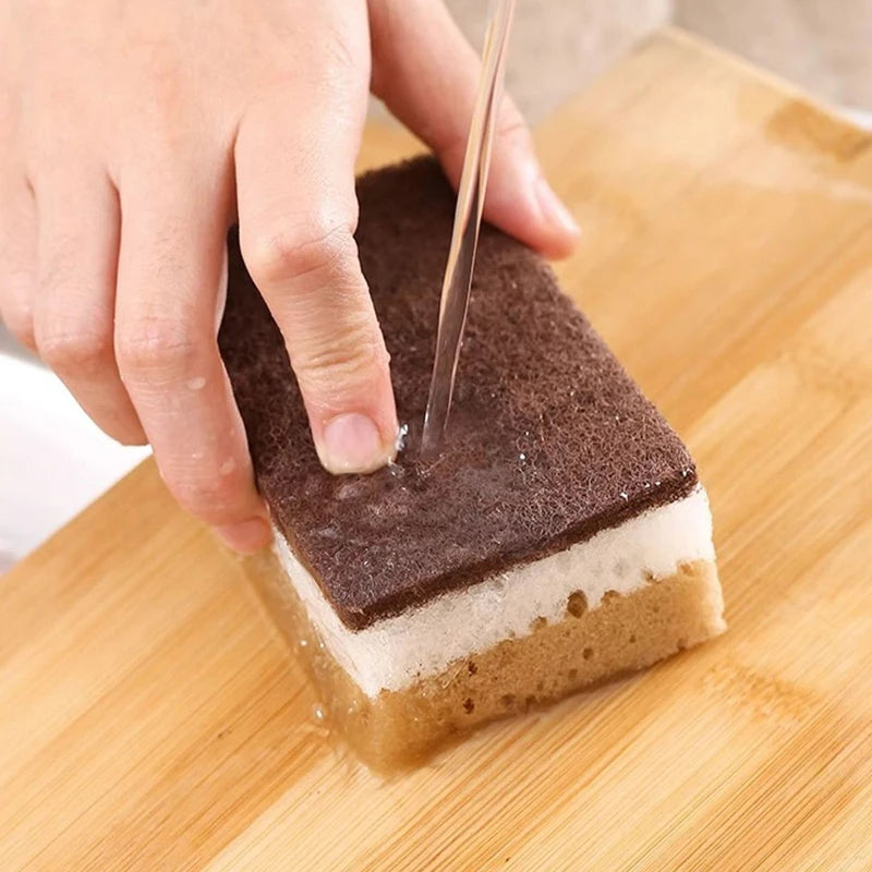 Double-sided Natural Sponges sandy fiber Scouring Pads Kitchen Pot Dishwashing Magic Rust Remover Brush Cleaning Accessories