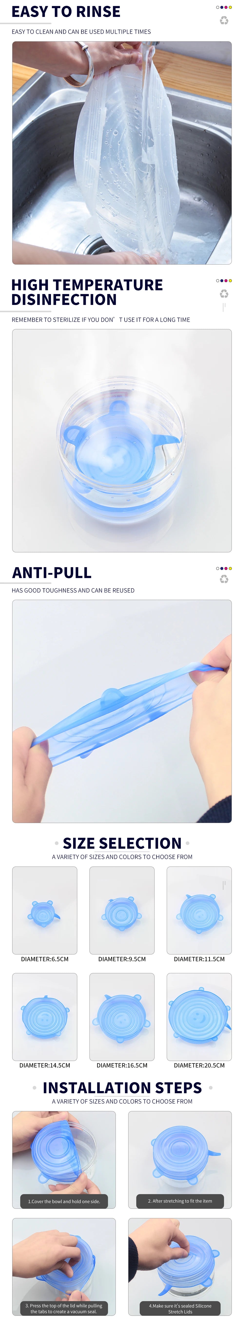 Meijuner Silicone Stretch Lids Fresh Keeping Cover Reusable Airtight Food Wrap Covers Stretchy Wrap Lid for Kitchen 6PCS