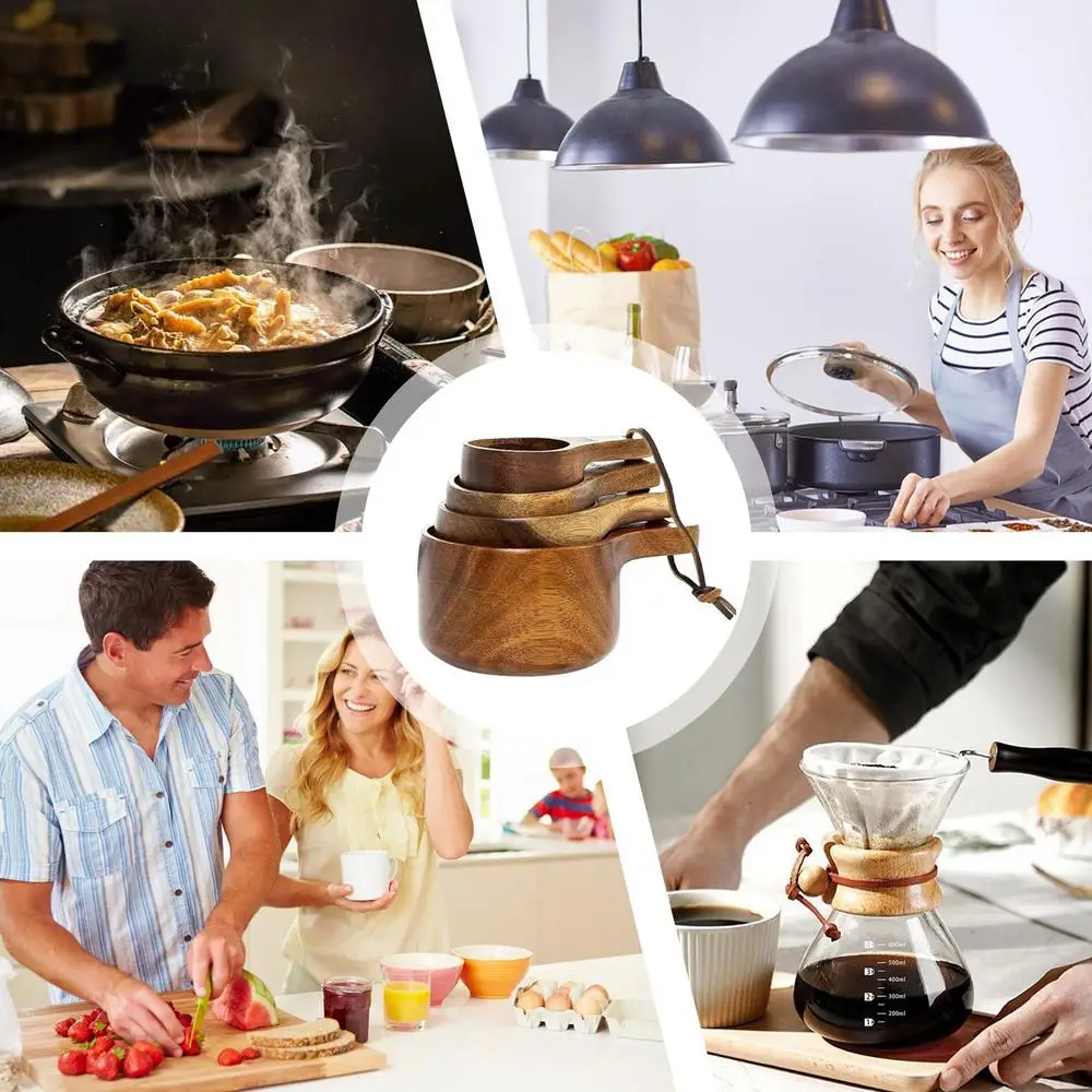 2.Effortless Accuracy: Boasting meticulous workmanship, this wooden measuring cups and spoons set ensures precise measurements through carefully engraved markings