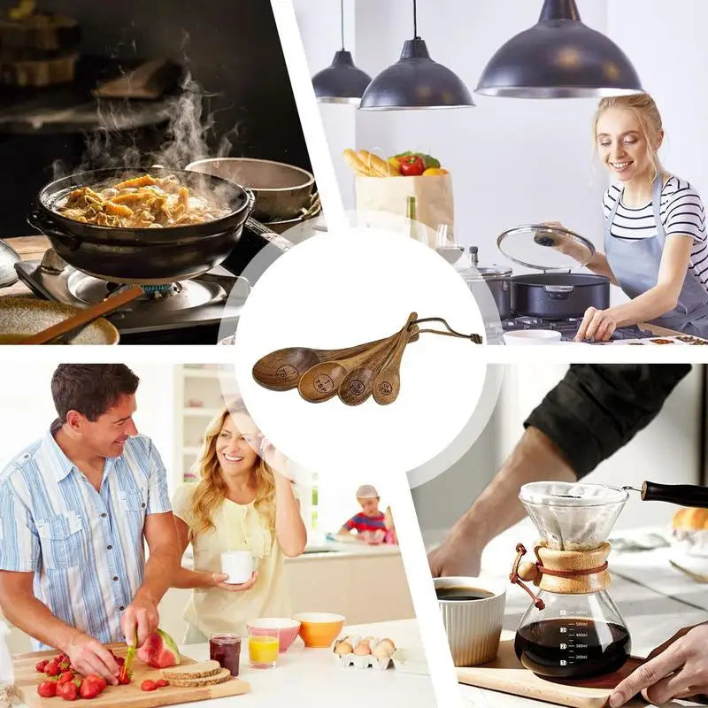 Enhance your culinary experience with these exquisite wooden measuring spoons. Crafted with precision and practicality in mind, they're the ideal alternative to metal utensils.